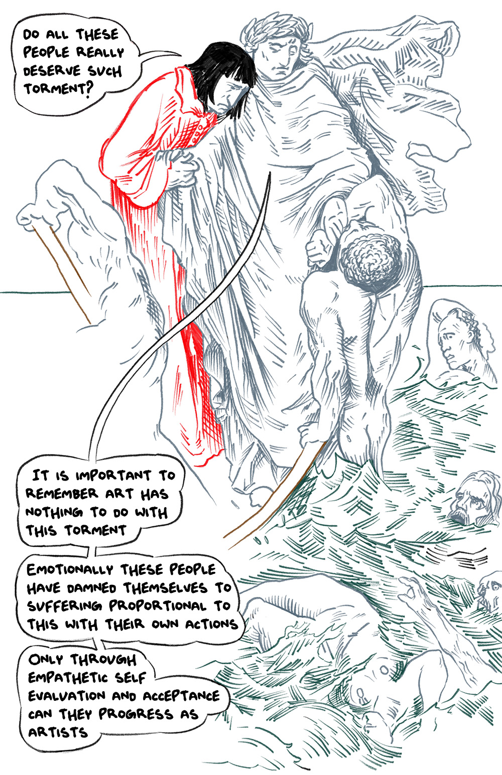 Experimentation with style using misc pages from Dantes Inferno, March 2025